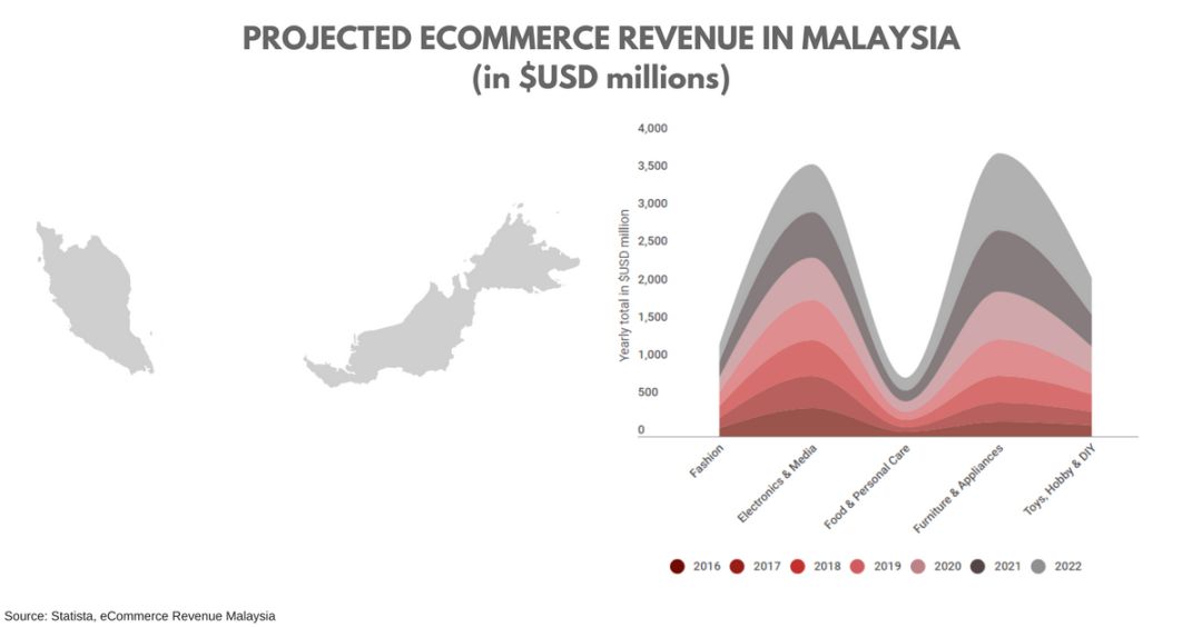 数据显示,马来西亚2018年电子商务市场的收入将达到13.80亿美元,预计收入将呈现17.6%的年增长率,到2022年的市场交易量将达到26.35亿美元。