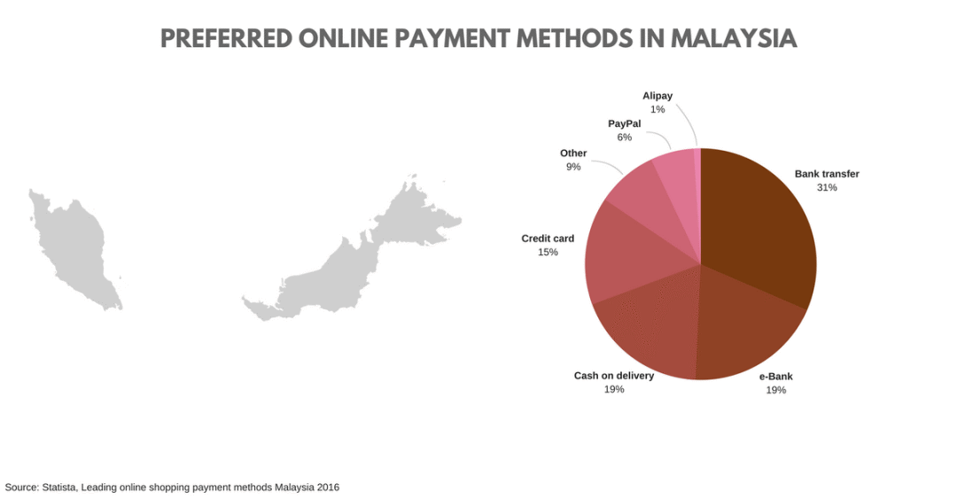 马来西亚人在线购物时,首选在线支付。数据显示,31%的马来西亚购物者喜欢在网上购物时通过网上银行转账付款 。