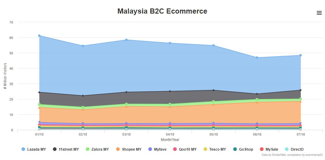 在马来西亚,最热门的电商网站是:Lazada MY、11street MY、Zalora MY、Shopee MY、Myfave。