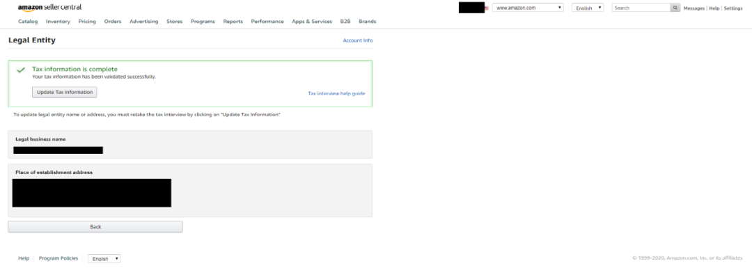 这张从亚马逊截下来的图片清楚显示持有店铺的公司名字,为银行提供公司背景。