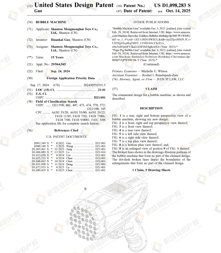 玩具产品市场前景广阔,卖家若想分一杯羹,务必要留意专利侵权风险。除泡泡玩具外,还有很多热销产品已布局外观专利: