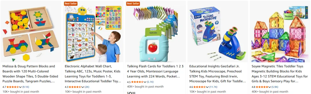 泡泡玩具一向热销,亚马逊美国站有9K+相关listing,其中大批产品月销过千破万,可见具有一定的市场潜力,能出爆款也并不意外。