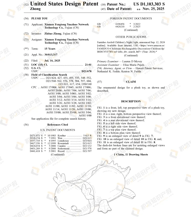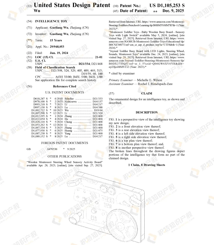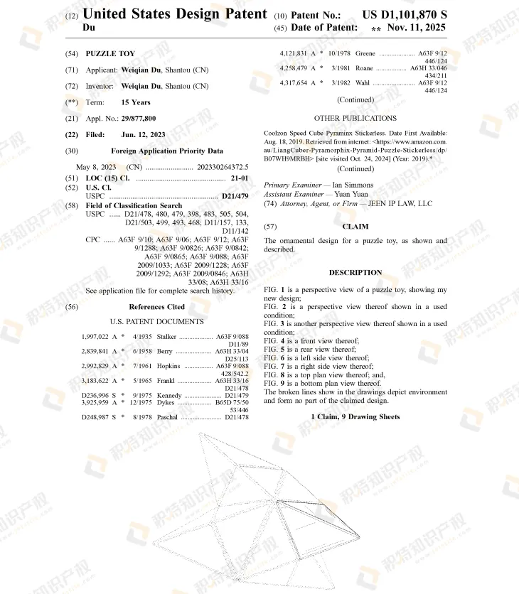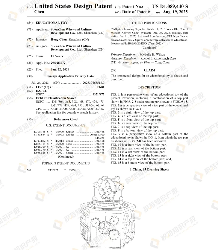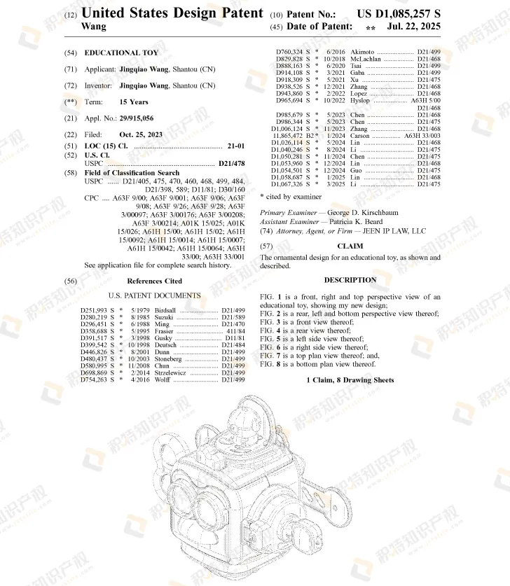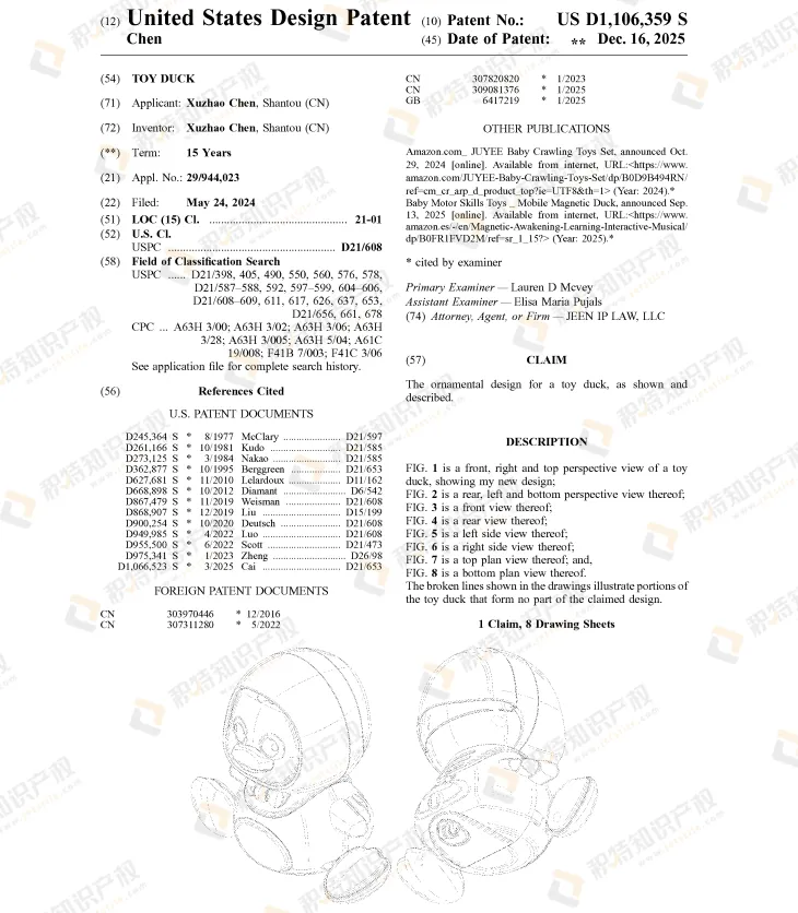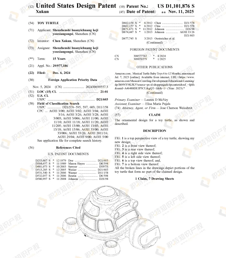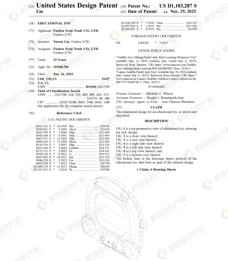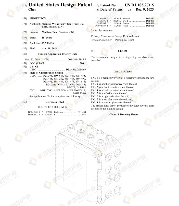 今年下证的益智玩具美国外观专利不亚于泡泡玩具,建议大家做好排查,切勿销售与他人专利高度相似的产品: