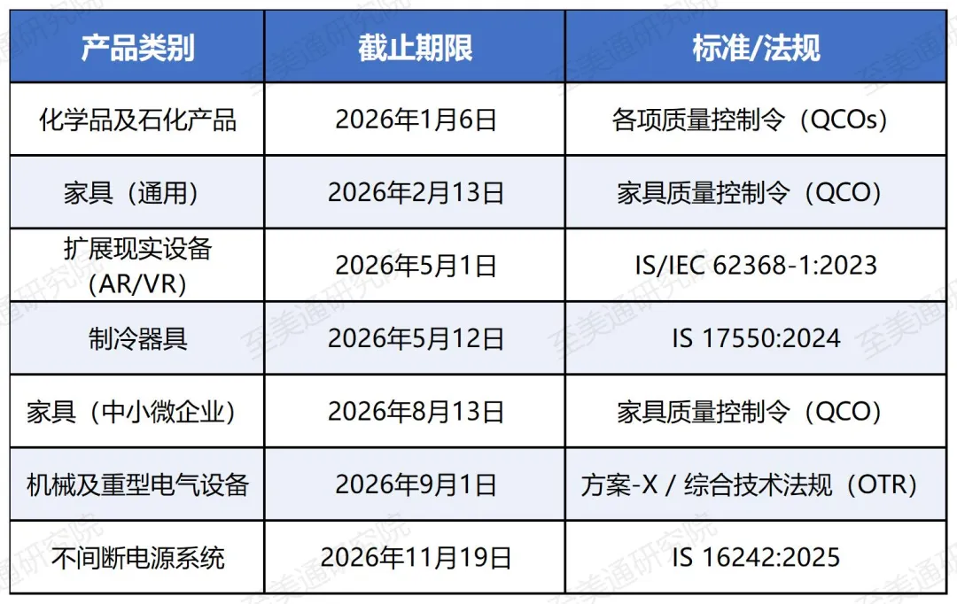 旧标准(IS 13252与IS 616)虽最终废止期为2028年11月,但众多新产品类别及特定修订将在2026年内分阶段执行。
