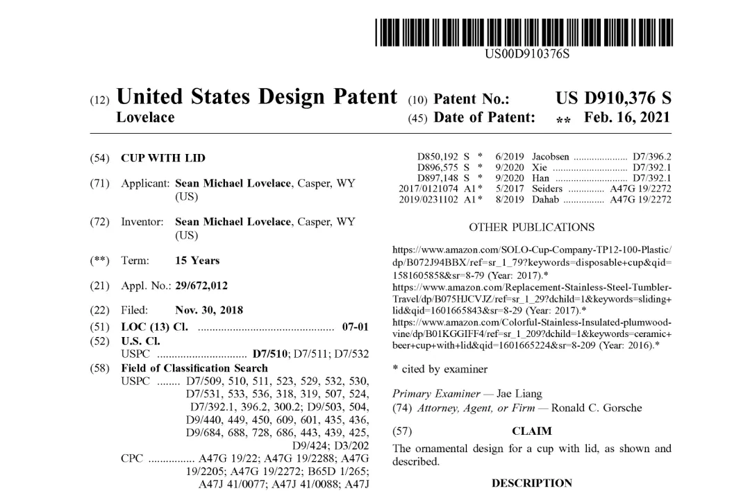 以“瑞幸咖啡杯”为案例检索分析是否可以注册美国外观专利?