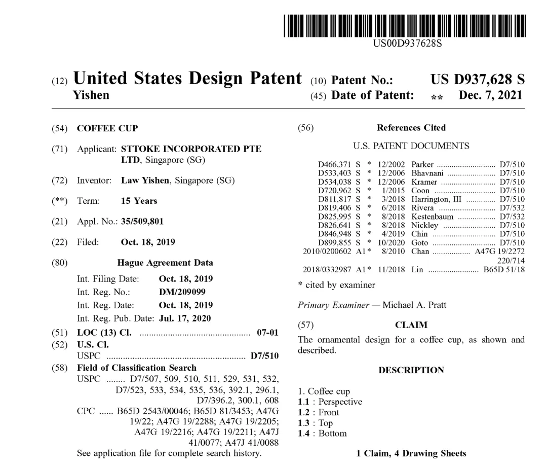 出海者小编结论:此款咖啡杯可注册美国专利。