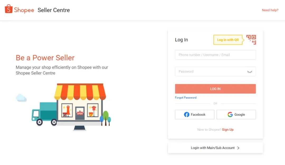 2. 使用您的Shopee账号用户名和密码登录卖家中心,网址为 seller.shopee.ph