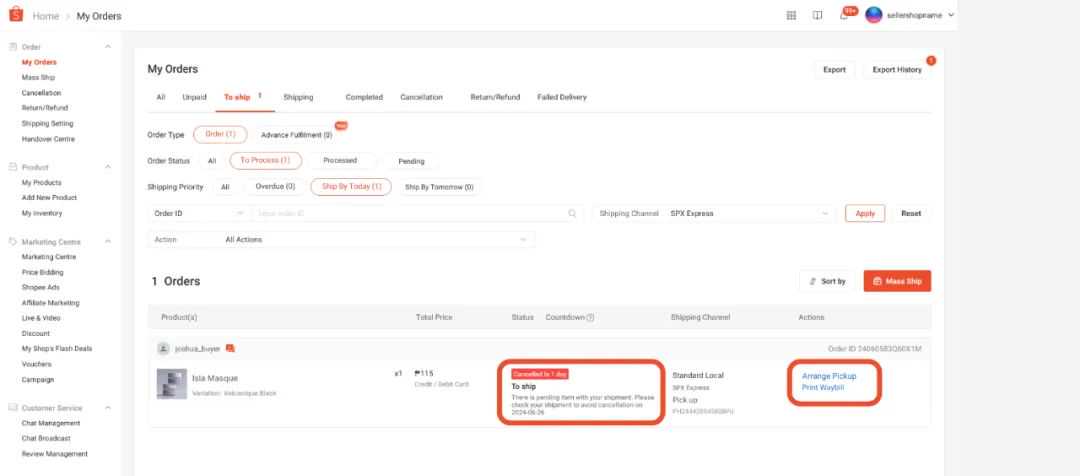 2. 2.在待出货(To Ship)栏查看需要出货的订单