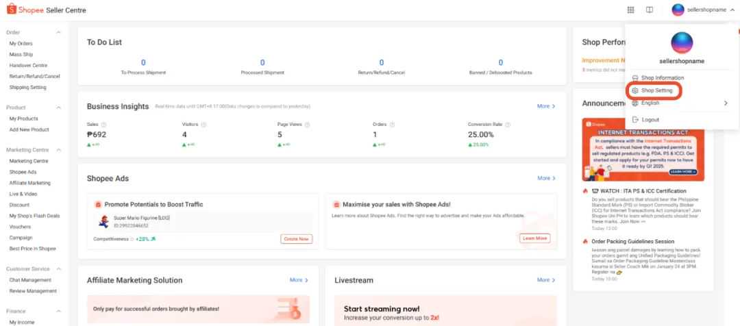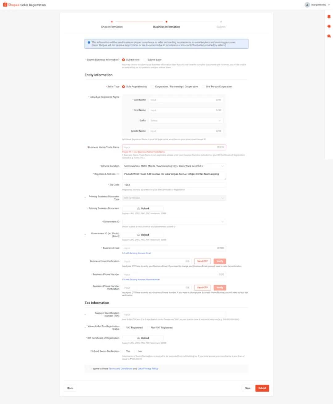 根据互联网交易法 (ITA,您的商业电子邮件和电话号码将向公众公开。建议使用专用的商业电子邮件和电话号码,而不是用于您的Shopee账户凭据的联系方式。