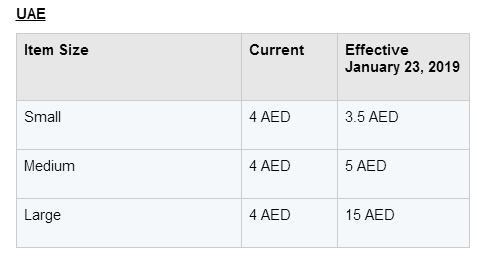 不再是统一的4AED的履行费,souq将按照产品的尺寸大小进行收取履行费,售价50AED以下的依旧收取结算费,只是结算费减至3AED的结算费