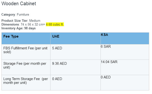 FBS卖家需缴纳每月存储和长期存储费用。为方便管理,Souq将在卖方中心启动新报告,显示产品的老化和立方英尺数据,用以计算仓储费:
