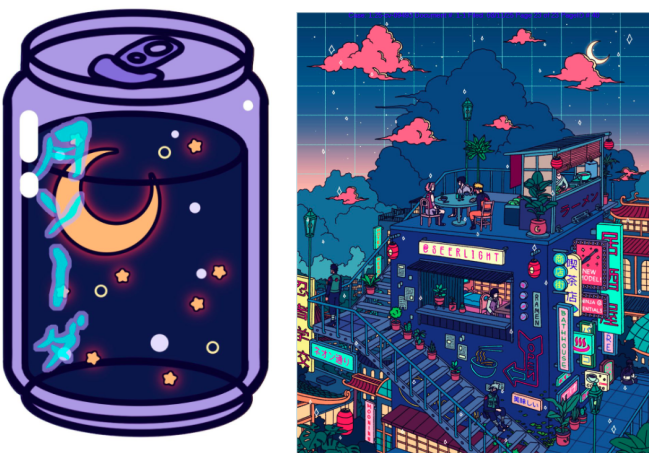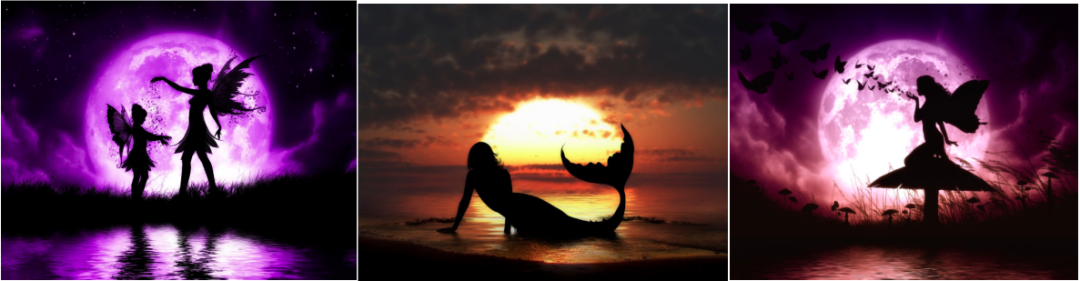 Julie是一位喜欢画奇幻风格剪影画的艺术家。她的画作里常出现美丽的精灵剪影,背景是色彩鲜艳的夜空或夕阳,非常吸引人。