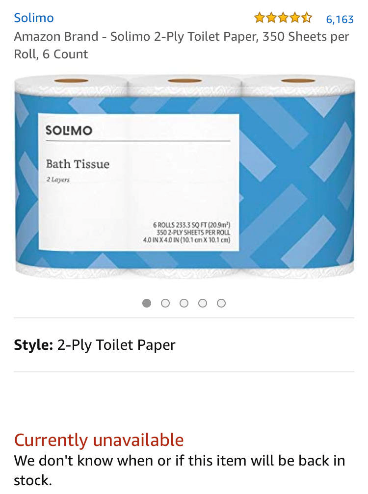 最近这段时间,亚马逊美国站,厕纸畅销品牌已经全面断货。亚马逊自营厕纸品牌Solimo,基本是一显示有货就马上被抢光。