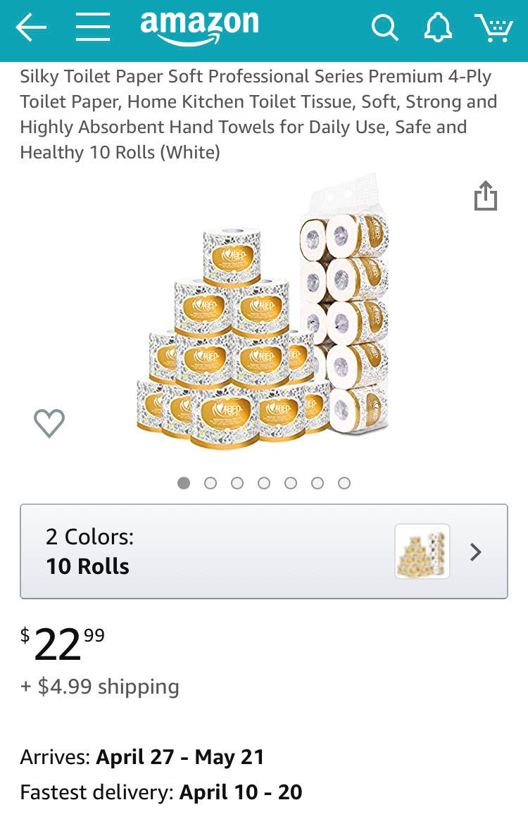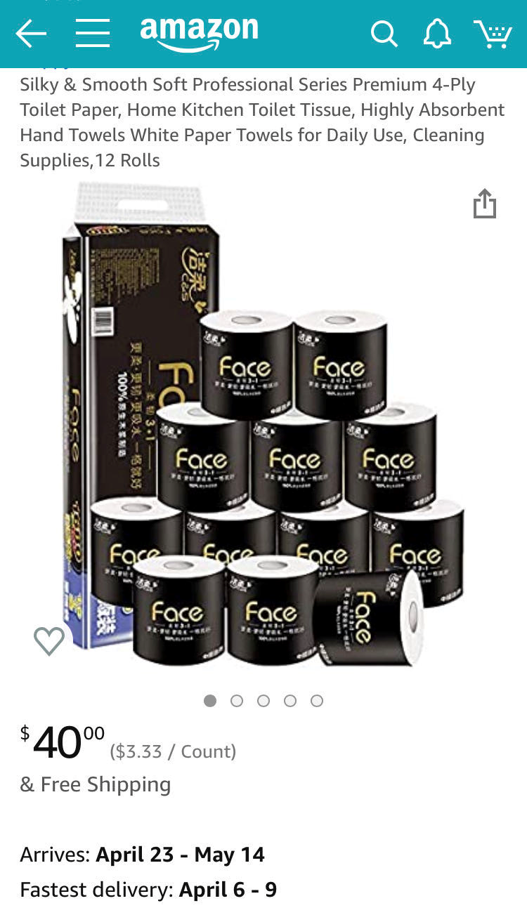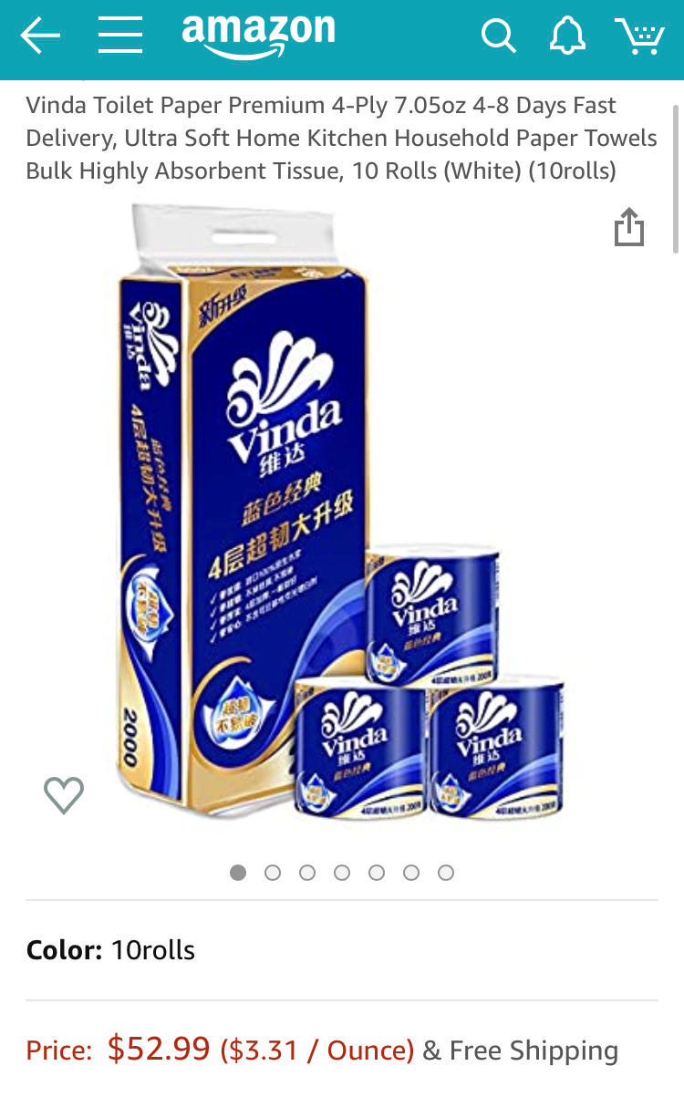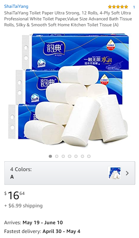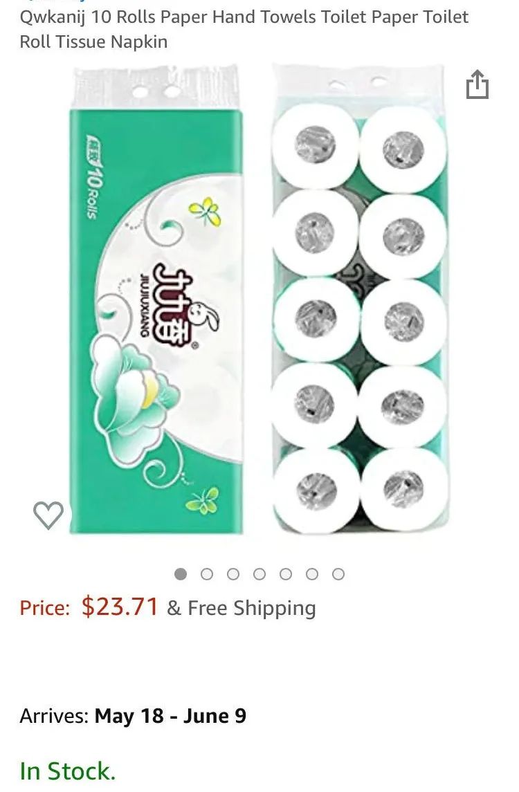 就在这个时间,中国出海的厕纸品牌纷纷登陆亚马逊,列队出征拯救美国家庭。虽然大部分上架listing看起来都是新品,没几个评论,但在特殊时期,销量还是不错的。