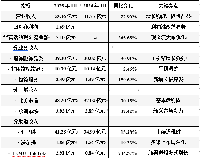 赛维时代的底气来自于其成功的品牌化转型。2025年上半年,公司营收53.46亿元,同比增长27.96%,其中服饰配饰品类贡献39.30亿元。更值得关注的是,公司已孵化出数十个年营收超千万的自有品牌,完成了从"铺货大王"到品牌运营商的蜕变。