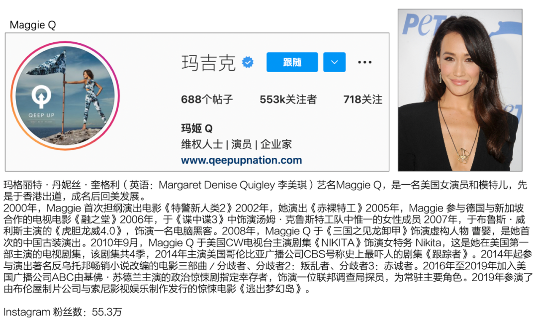 再比如我们都很熟悉的在香港曾经非常出名的Maggie Q,其实已经是《碟中谍》的女主,和美剧《尼基塔》的女主。