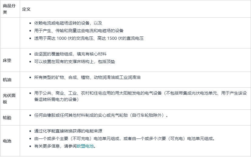 以下分类中的商品(包括二手和翻新商品)需要遵守比利时的生产者责任延伸要求。