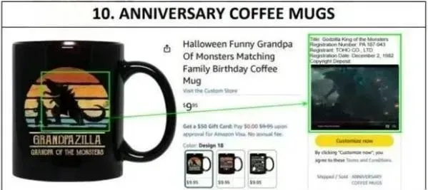 动画影视作品/热门IP形象一直都是版权侵权的高发区,未经授权使用相关形象、图片均会触发侵权风险,所以各类周边产品一定要慎卖,全球知名的怪兽角色Godzilla哥斯拉就曾一次冻结1200家跨境店铺!