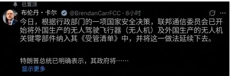 2025 年 12 月 22 日,美国联邦通信委员会(FCC)抛出一枚 “行业炸弹”—— 以 “危害国家安全” 为名义,发布针对所有外国制造无人机及关键零部件的全面管制禁令。