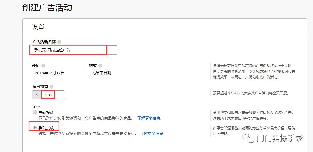 这里的广告活动名称你可以自己拟定,可以用产品名或者sku来命名,方便自己区分就成!