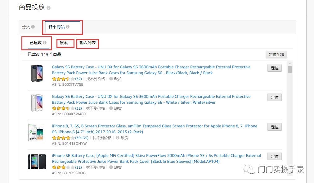 注意这里通过你店铺里面商品的ASIN或者SKU来搜索选定你准备投放广告的商品(PS:FBA有库存做广告才有效大家都知道吧!我这里是做演示所以缺货状态)