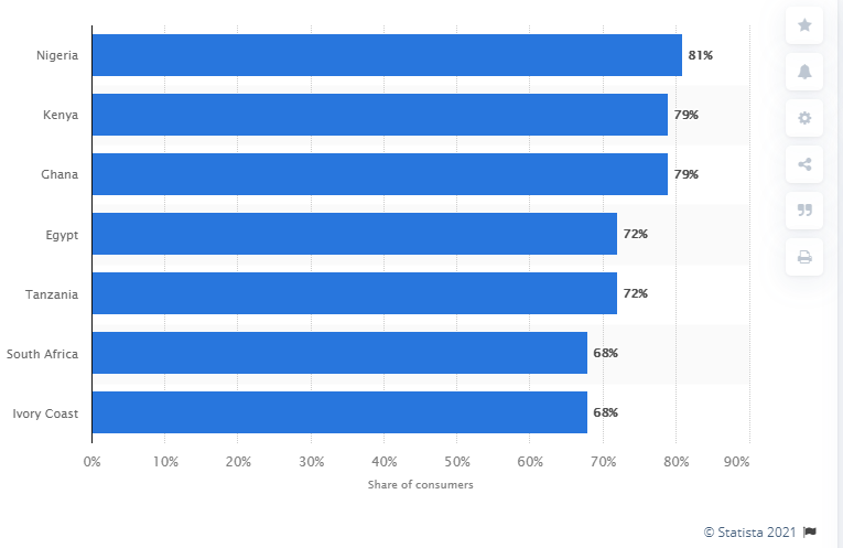 有研究表明,疫情促进了非洲电子商务的发展。Kantar的“2019冠状病毒病晴雨表调查”结果显示,在2020年8月,80%以上的女性在新冠疫情爆发后进行了电子商务购物,并且疫情过后,女性更有可能继续在网上购物。