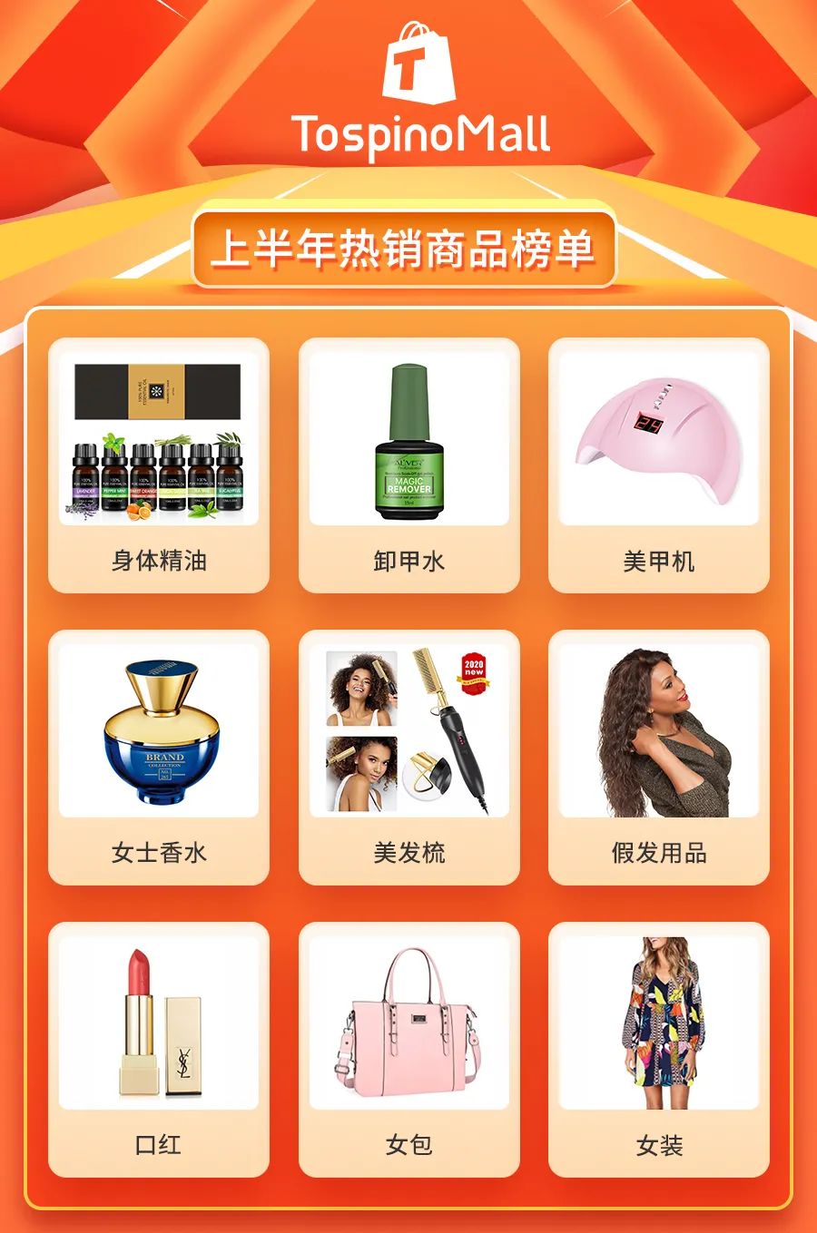 自上线以来,TospinoMall一路高歌猛进,也向各位卖家交出了一份不错的答卷。平台注册用户以月均25%的速度增长,客单价在40美元左右,月复购率高达40%。此外,在TospinoMall平台畅销榜中,“她经济”一直表现不俗。