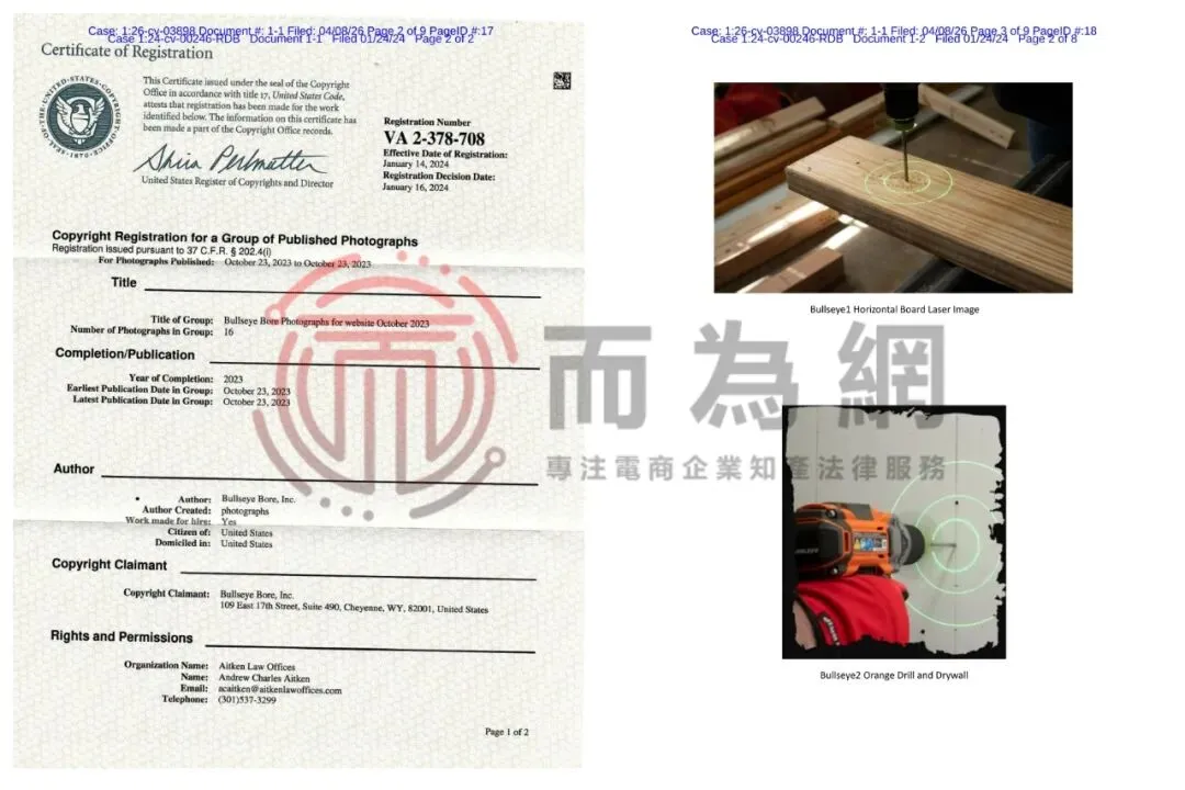 【侵权快讯】26-cv-3898 工具类卖家注意!一款激光钻辅助器正在发起商标+版权双维权,速排查下架!