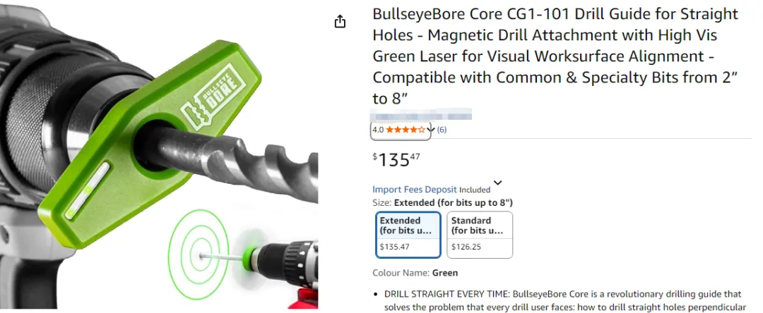 该产品通过磁力吸附在电钻前端,随钻头高速旋转,以激光同心圆直观帮助用户实时判断钻头是否与工作面垂直,当钻头垂直时,呈现完美同心圆;倾斜时图案变形,则会提示校正。因此操作者只需观察圆环形状即可实时修正角度,无需停下操作或使用繁琐的物理导向架,以操作简单、精度极高的优点,迅速成为欧美工具圈爆款。