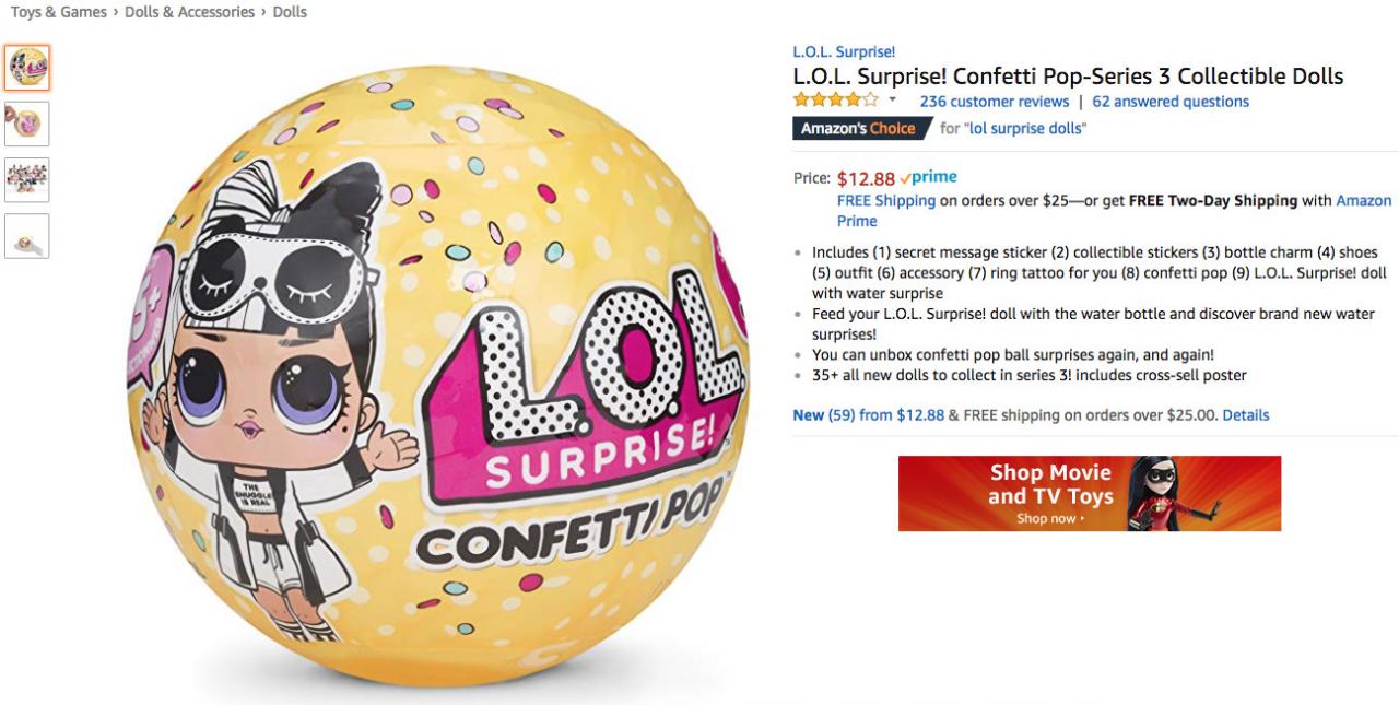 可以看到,在上周 Toys & Games 品类的 Best Seller 榜单中,来自品牌L.O.L. Surprise!的五彩玩偶在上周连续七天稳居榜单前二,甚至五次登顶榜首,以平均排名1.29的领先优势位列商品综合排名首位;