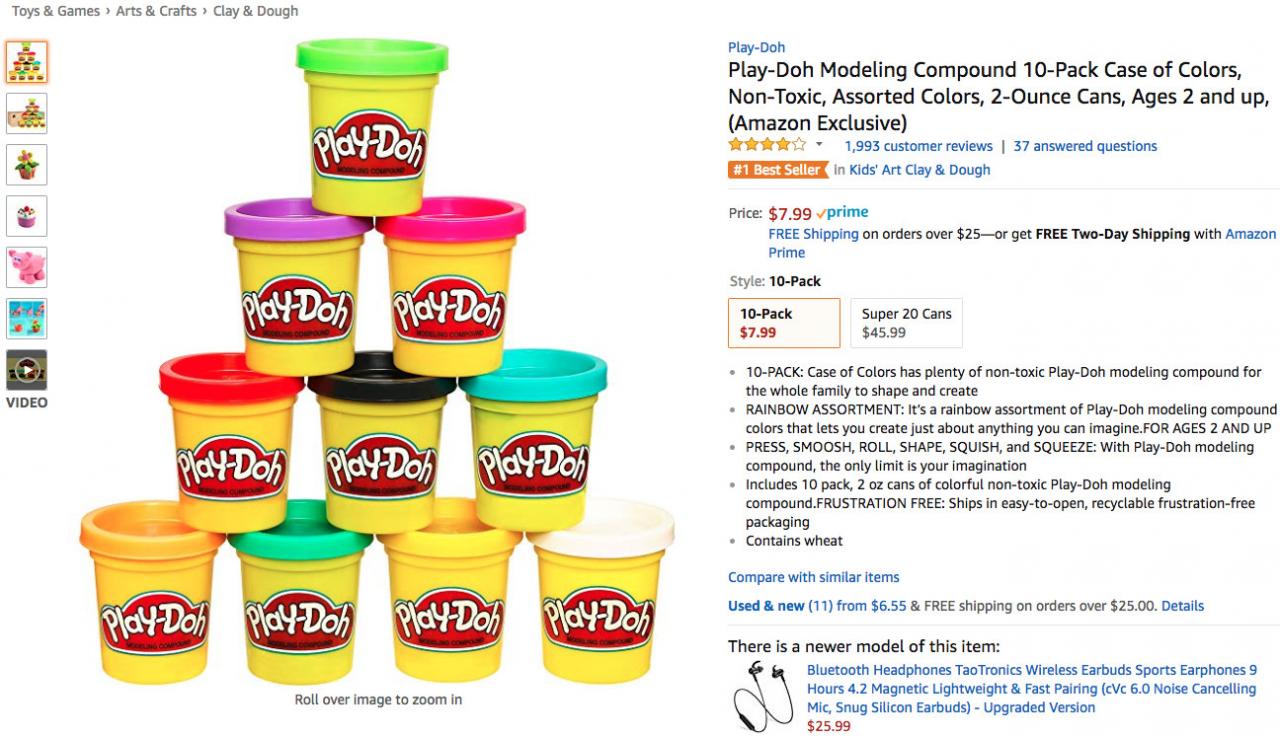 此外,来自品牌Play-Doh的 造型玩具泥在上周连续七天位列榜单前五,以平均排名4.0位列商品综合排名第三。