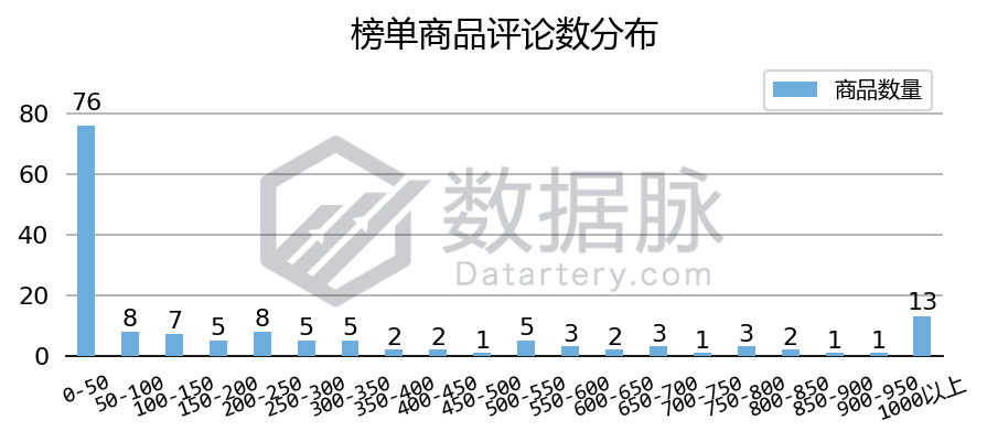 在上周 Toys & Games 品类的 Hot New Releases 榜单中,单个商品拥有的最大评论数为10610.00条,最 小评论数为0.00条,平均评论数381.45条,评论平均星级4.13星。 其中,高达49.67%的上榜商品评论数不超过50条,此外有13款上榜商品的评论数超过了1000条,占上榜商品总数的8.50%。同时,骆探长 (shujumai.com)发现,与前几期分析相比,该周进入 Hot New Releases 榜单的商品整体平均评论数有较大幅度上升,新品上榜空间有所下降。