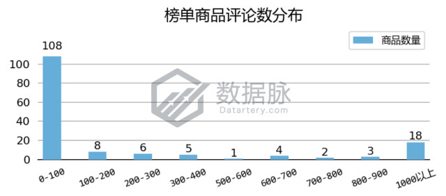 在上周登榜 Kitchen & Dining 品类 Hot New Releases 榜单的商品中, 单个商品拥有的最大评论数为8827.00条,最小评论数为0.00条,平均评论数405.62条,评论平均星级4.38星。 其中,69.68%的上榜商品评论数在100条以内;此外,还有18款上榜商品的评论数超过了1000条,占上榜商品总数的11.61%。同时,骆探长(shujumai.com)发现,与前几期分析相比,该周进入Hot New Releases榜单的商品整体平均评论数大量增加,并且平均星级增肌了0.18星,新品上榜难度进一步增大。