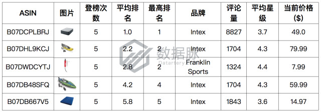 品牌Intex的一款充气床垫的市场口碑同样堪忧,其平均星级为3.6星,但其榜单排名稳定上升,以平均排名5.8位列综合排名第五。