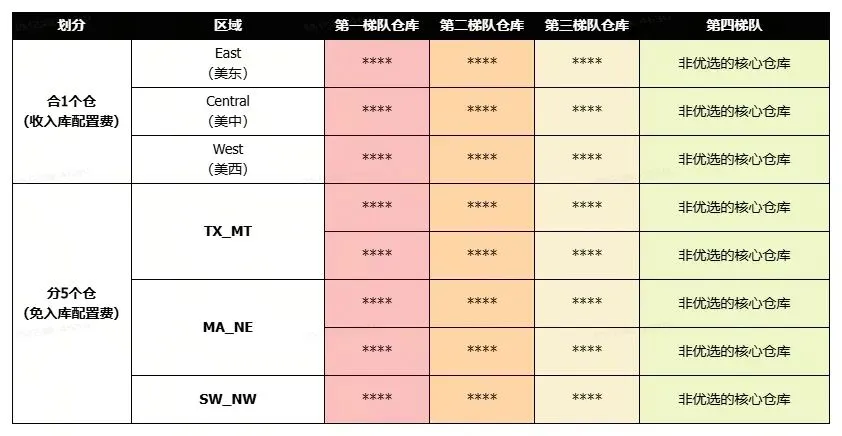 合仓1️⃣个:按美西 / 美中 / 美东区域,优先分配第一梯队固定仓库