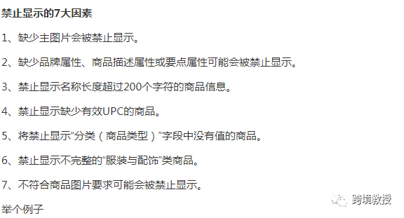 如果Listing出现下列情况,商品或内容将被禁止显示,直接导致消费者无法搜索或浏览到你的商品!