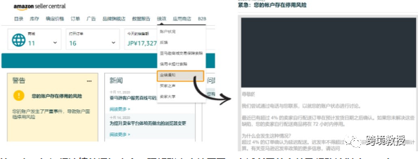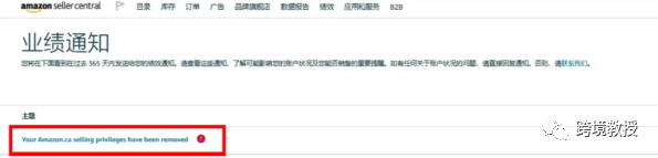 第一步:请查看卖家平台 >> 绩效 >>业绩通知
