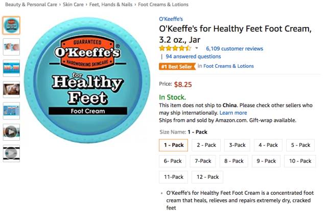 骆探长发现(shujumai.com),品牌为 O'Keeffe's 脚霜产品未能如上期预计表现出强大的竞争力,虽然一周内4次进入榜单前十,但是于2017年7月12日榜单排名跌至85,以平均排名23.71位居综合排名第五位。
