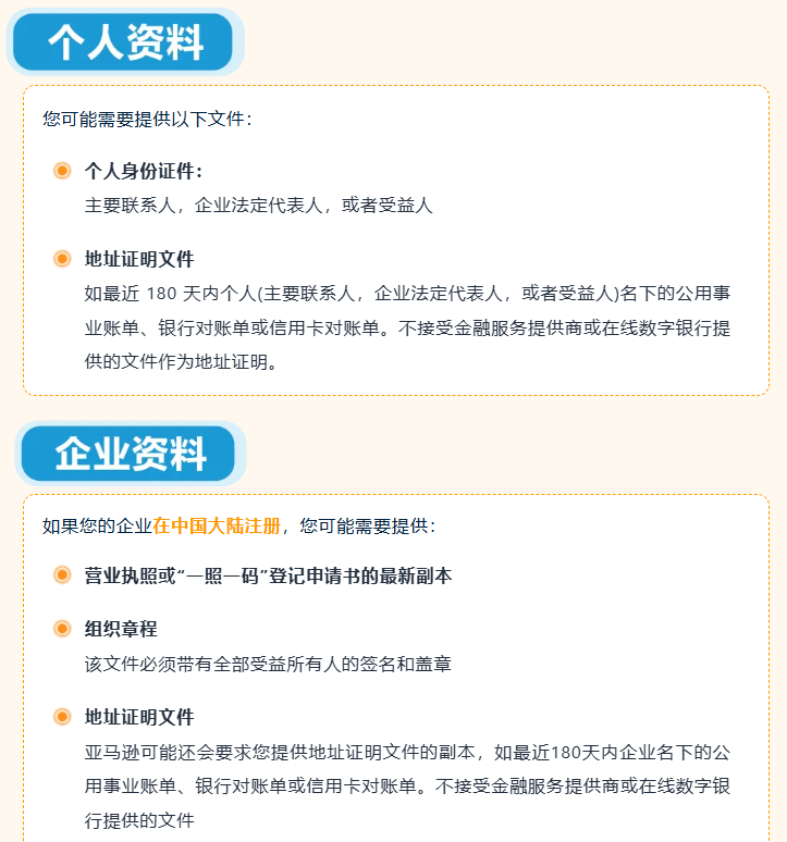 【初次验证】:亚马逊将会以邮件形式通知您所需完成的验证操作,并在您卖家账户信息页面上以横幅的形式通知您完成上述一个或多个验证操作。