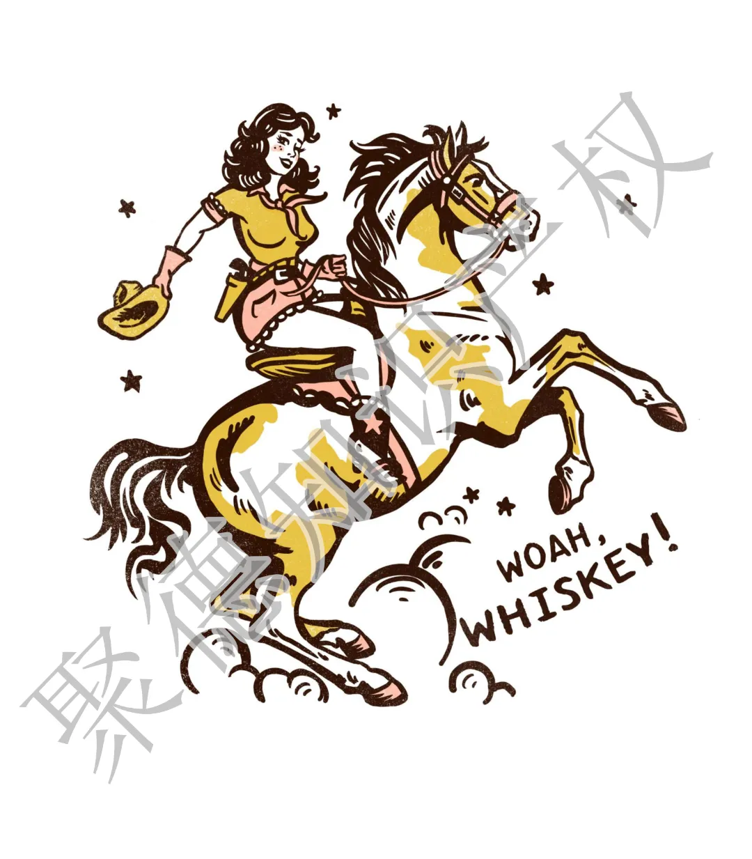Whiskey Ginger 专注于复古海报女郎插画、复古西部女牛仔艺术、旅行艺术版画,以及融合威士忌美学风格的创意家居陈设。