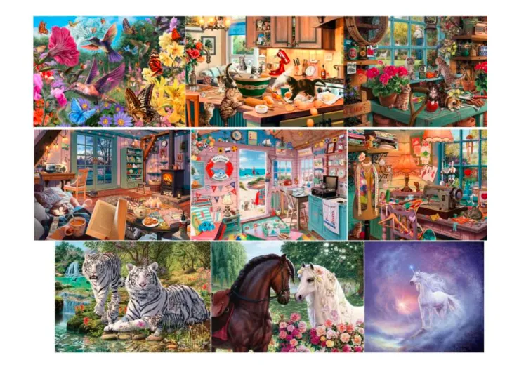 Steven Read是一位自学成才的英国艺术家,现居多塞特郡,专注于海岸及乡村风景、野生动物与旅行海报风格的插画创作。近年来,Steven Read涉足拼图领域,将艺术与趣味完美结合,获得了拼图爱好者的喜爱,并实现了艺术与商业变现的闭环。此次维权的是9项美术作品版权,以家庭、花园、自然场景为载体,融入宠物、动物、生活物件等元素,传递治愈感。