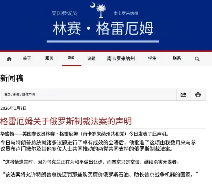 此外,特朗普的亲密盟友、美国共和党参议员林赛·格雷厄姆同日声称,他正推动一项相关立法,计划对购买俄罗斯能源的国家征收高达500%的关税;