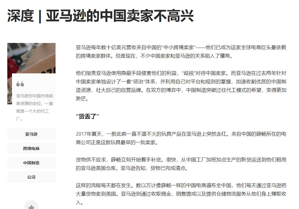 又一篇关于讲述亚马逊卖家生存状况的自媒体文章火了。