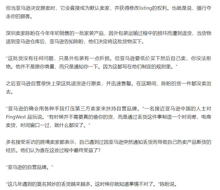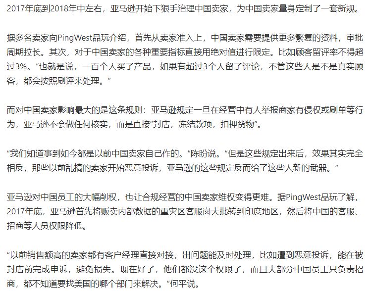 作为一个长期沉浸在运营一线的亚马逊卖家,作为一个分享了1000多篇亚马逊运营方面的文章的资深亚马逊卖家,作为一个每天要和不少于三十个亚马逊卖家直接一对一交流解答他们运营中遇到的各种问题的亚马逊卖家,我确实觉得,文章主题明显有夸大问题之嫌,把个例当作普遍现象,把带有偏见的观点放大得仿佛具有普适性似的。