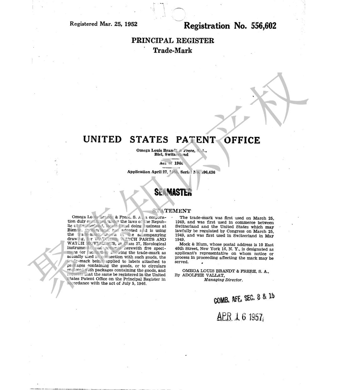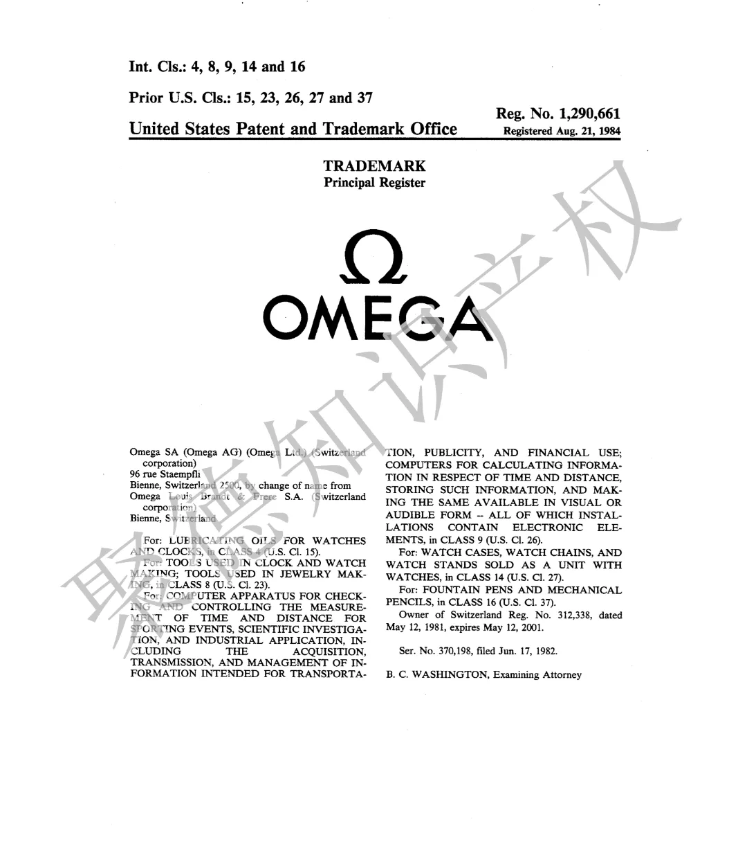 原告:Omega SA