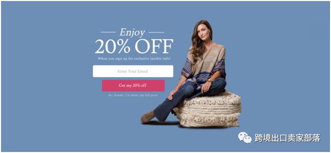 卖家需注意,消费者花费在弹窗上的时间通常非常短暂,所以描述一定要尽量精炼,同时还人要让消费者清楚他们将获得什么,需要采取什么行动来获得福利(提供电子邮件、订阅关注等),以及他们何时会收到福利(每月通讯、即时优惠券代码、电子书等)。