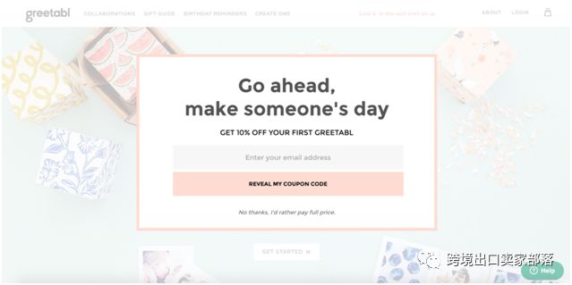 1、Greetabl:简约优雅风格的弹窗设计与网站背景想融合