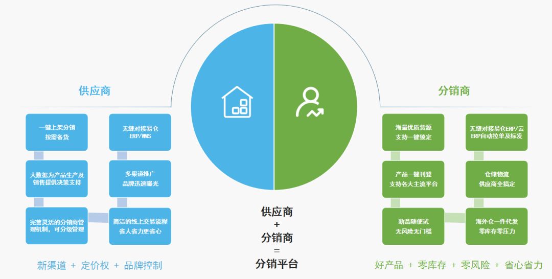 工厂/供应商可借助易仓分销系统建立分销平台,将本身的货源全部刊登在平台上,让其他想销售产品的中小卖家(分销商)进行分销合作!易仓分销系统能解决什么问题?