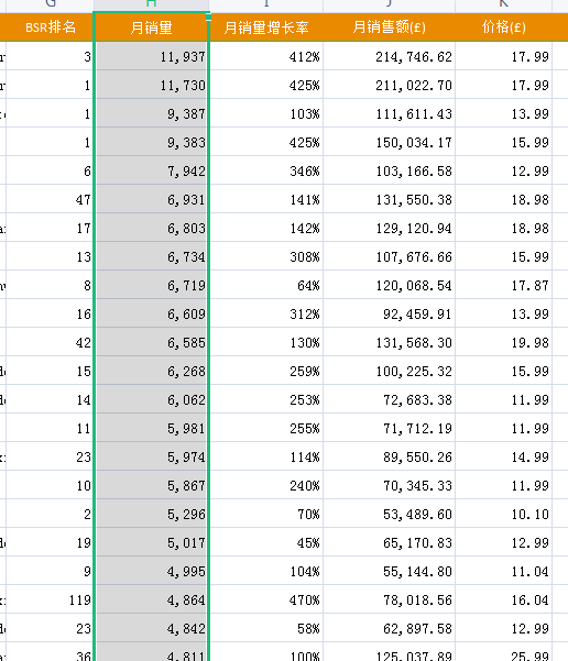 以下是卖家精灵查产品的结果,前三名销量增长都是400%以上。