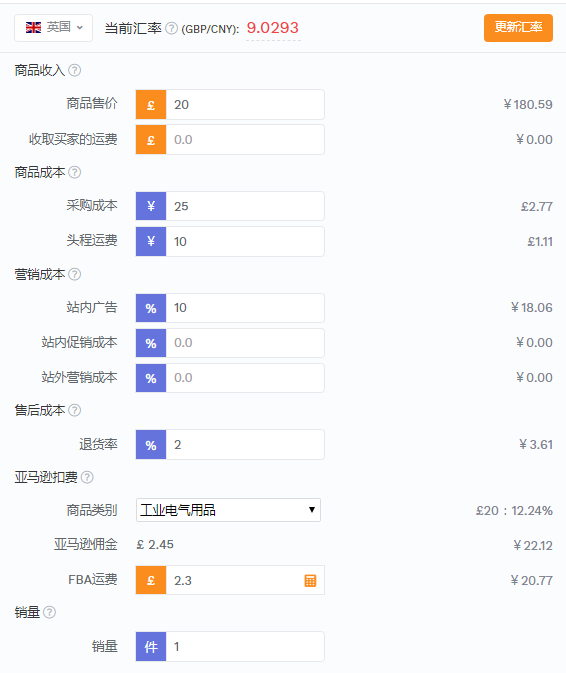 净利润¥81.03 人民币 £8.97英镑 毛利率44.85% 。